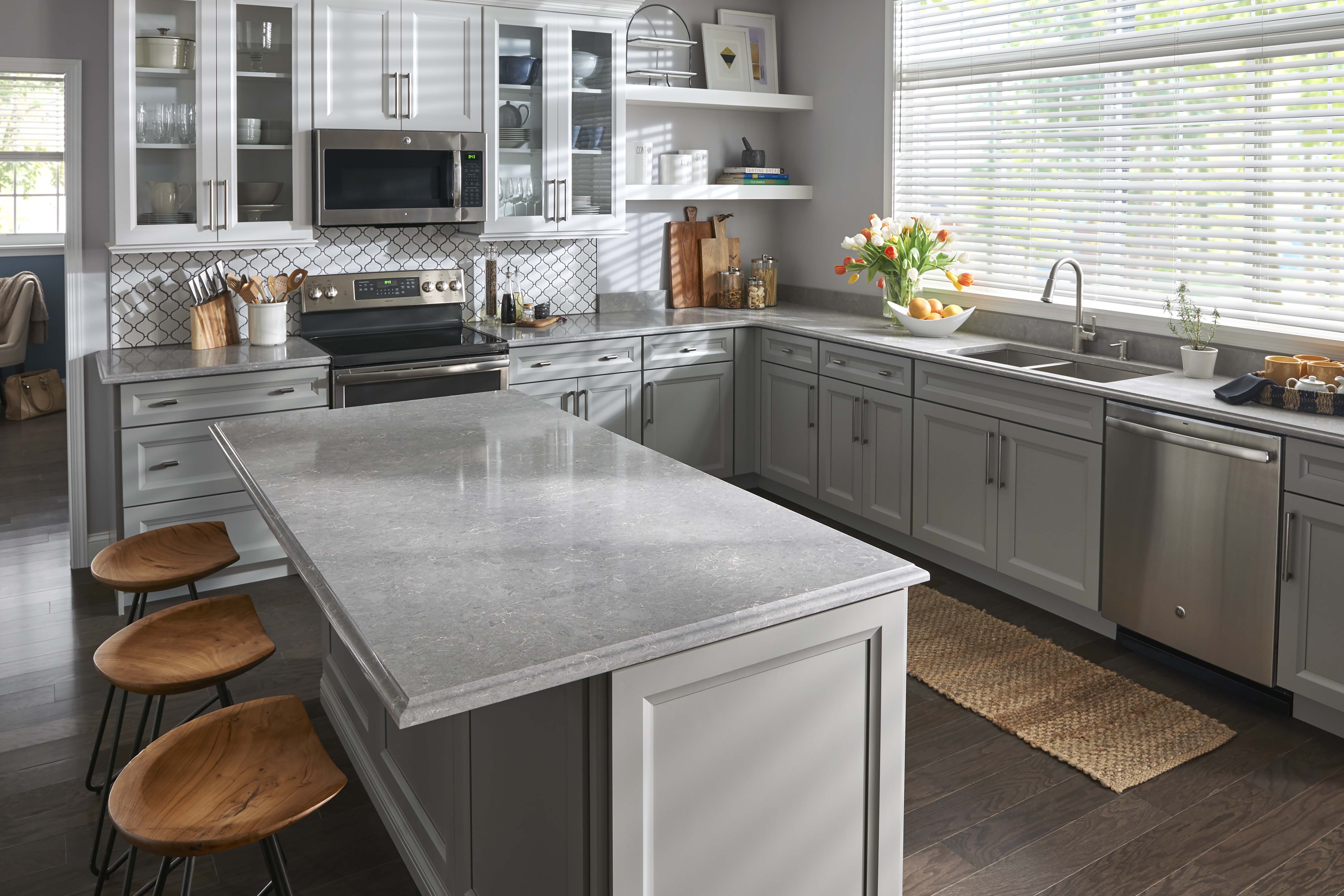 Cool and composed, a canvas of smoky grey serves as the backdrop for hints of warm beige tones. This perfect union of light and dark hues will bring harmony to your living space.
