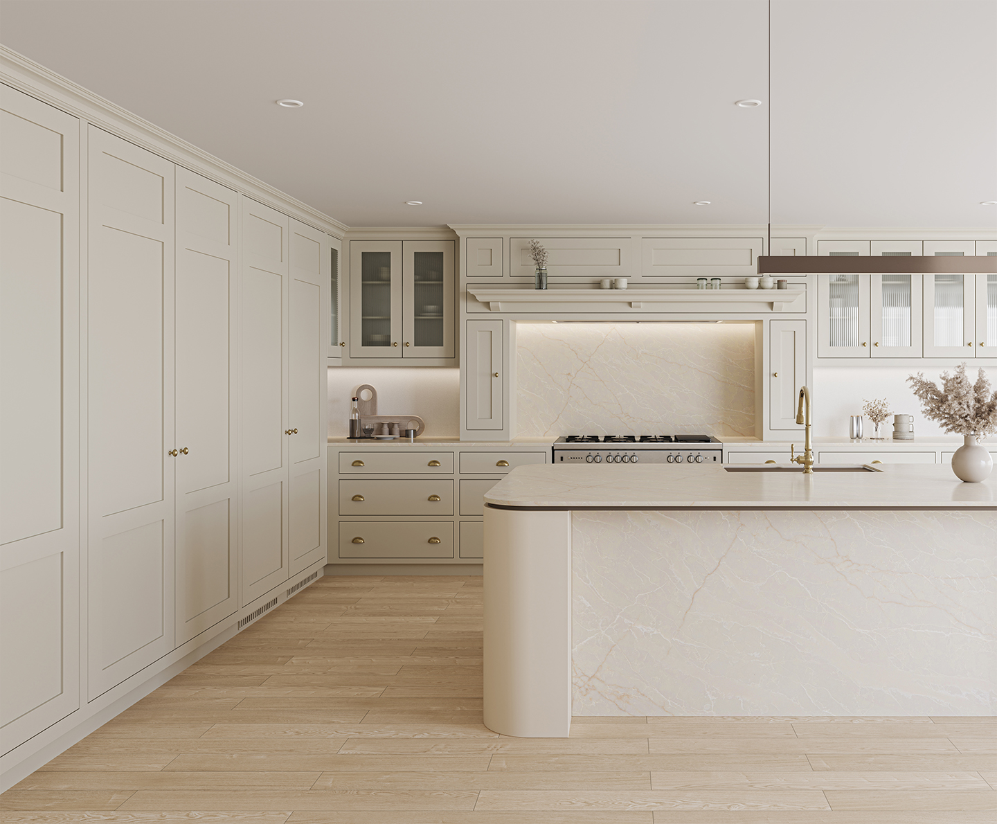 Inspired by the timeless beauty of natural quartzite, Taj Crema effortlessly harmonizes sophistication and warmth. With layers of white and gold veins on a warm, creamy base, Taj Crema captures the majestic essence of the quartzite, Taj Mahal. A pinnacle choice for kitchens and baths in search of opulent yet approachable glamour, its translucent foundation adds depth to the surface. The long, elegant white veins cast delicate silhouettes, while the earthy gold veins introduce a touch of grandeur.