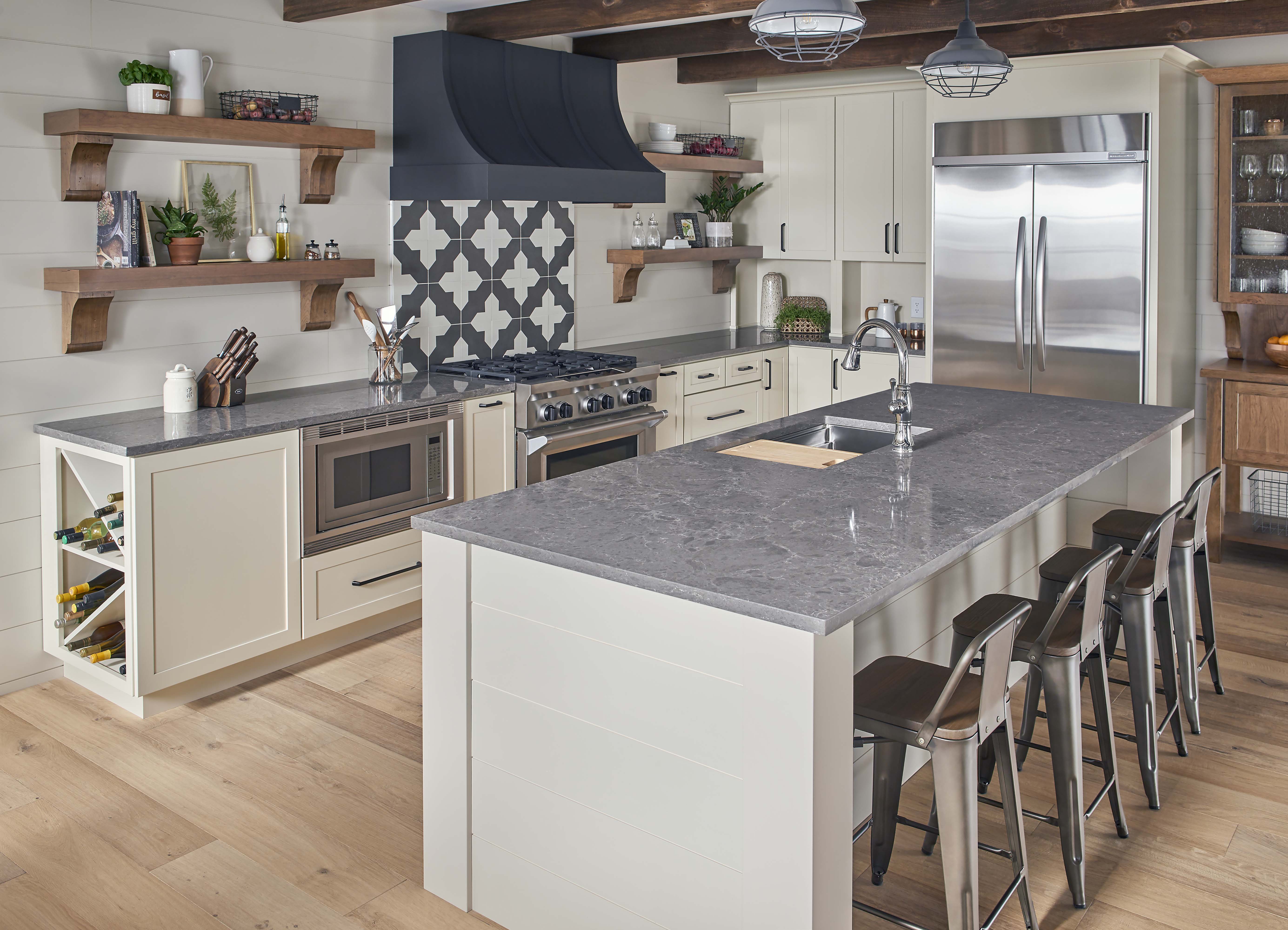 Take your designs to new heights with this agile surface that is the perfect arrangement of form and function. Vibrant threads ring out across a cool taupe surface, creating an operatic aria made up of octaves of color. The melodious play of light and dark will serenade you with lush beauty and its attractive features can make any room sing.